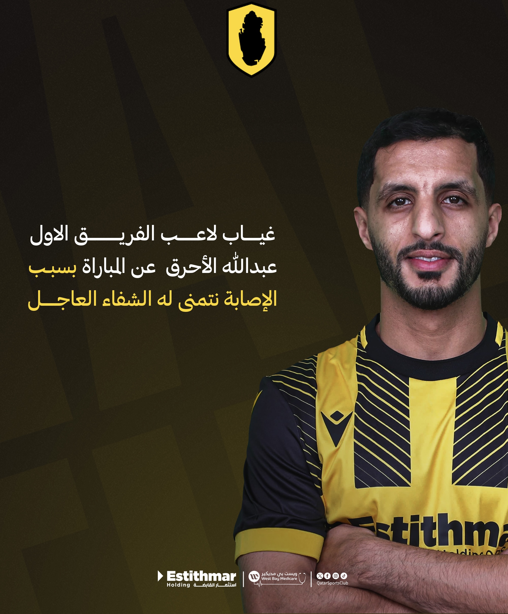 تعرض لاعب فريقنا الأول لكرة القدم عبدالله الأحرق للإصابة في العضلة الخلفية.