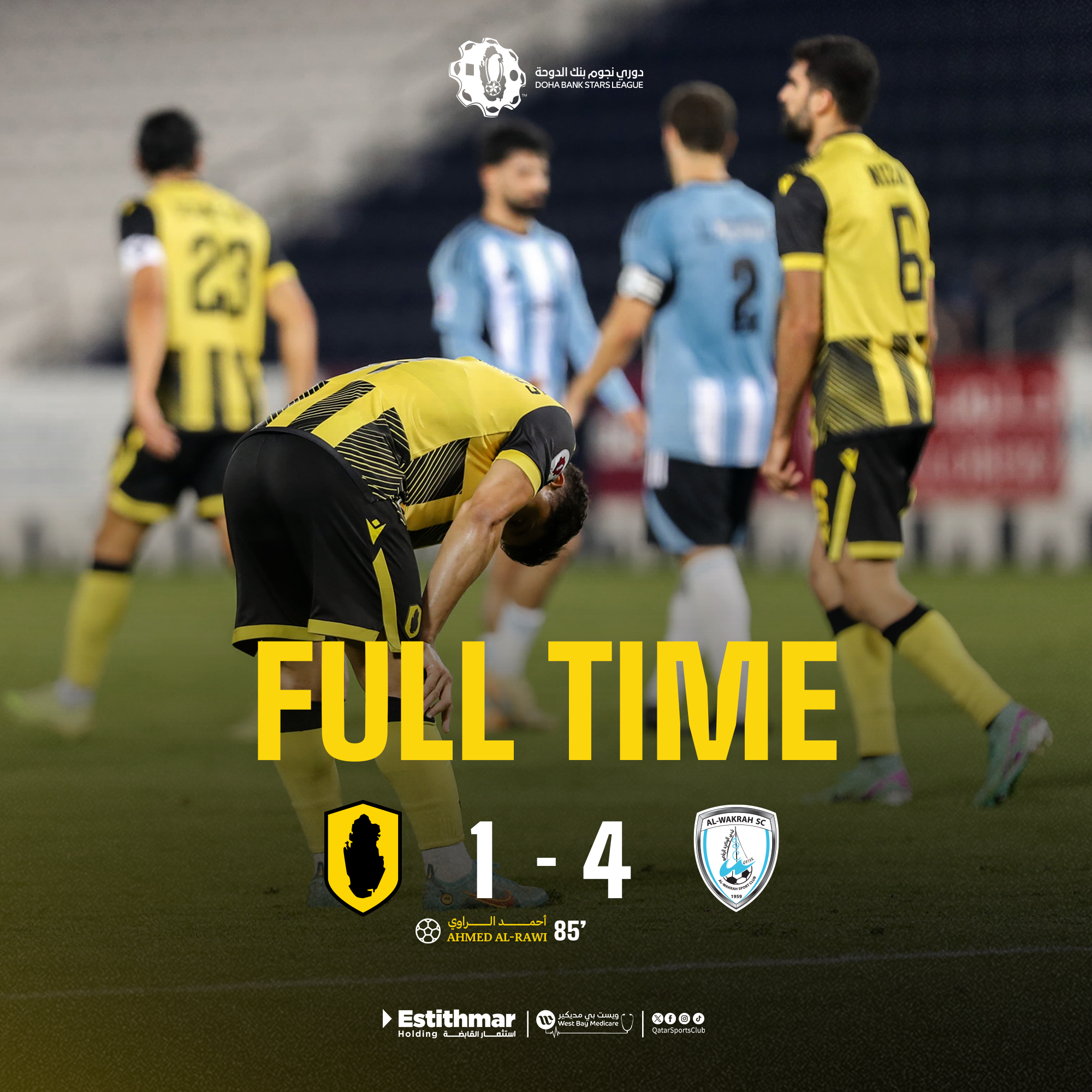 خسر فريقنا الأول لكرة القدم أمام الوكرة بأربعة أهداف مقابل هدف، خلال المباراة التي جمعتهما اليوم في الجولة العشرين من دوري نجوم بنك الدوحة.