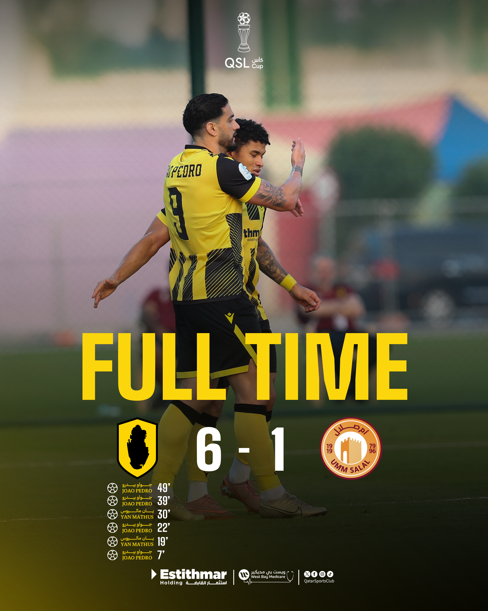 حقق فريقنا الفوز على أم صلال بنتيجة 6 – 1 خلال المباراة التي جمعتهما اليوم في كأس QSL.