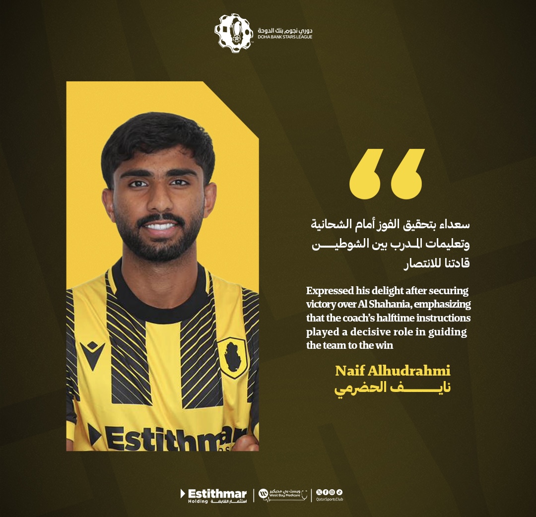 وقال الحضرمي بعد المباراة: “نحن سعداء بتحقيق الفوز وحصد الثلاث نقاط، والحقيقة أننا لم نكن في تركيزنا خلال الشوط الأول واستقبلنا هدفين لكننا نجحنا في العودة خلال الشوط الثاني بعد تنفيذ تعليمات المدرب” مشيدا بالمستوى الذي قدمه الملك القطراوي خلال الشوط الثاني وتحويل التأخر إلى انتصار منح الفريق الثلاث نقاط.